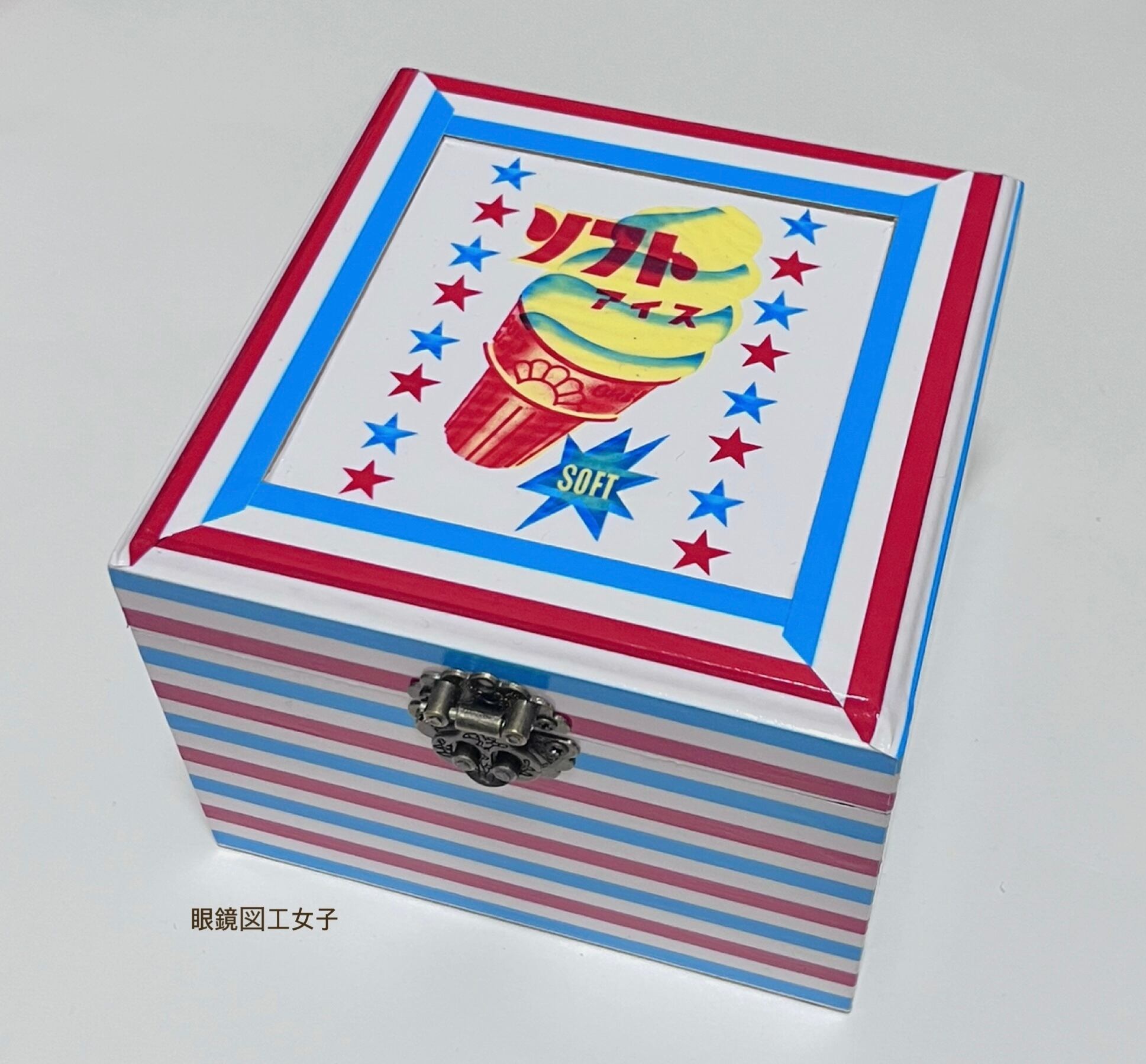昭和レトロモチーフを使った木箱です